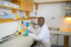 In our DFG-project, Albert Eisenbarth has just finished building up the bio-molecular lab. He uses PCR to amplify filarial genes from all kind of Simulium and other blood-sucking flies, coming to bite on man and cattle. The identity of single filarial larvae (and microfilariae, adults etc.) is then confirmed by sequencing of the PCR-products in Tübingen. The same approach is used to identify Ceratopogonid and Culicid vectors, that are likely to be the yet unknown vectors for O. armillata, O. gutturosa and Setaria labiatopapillosa in this region.